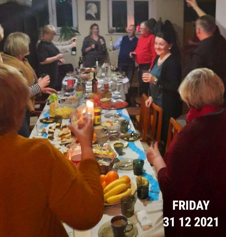 Wieczorem 31 grudnia 2021 grupa niezwykłych, nieznanych sobie wcześniej osób zasiadła przy obficie zastawionym stole. To był wyjątkowy czas refleksji, świadectw i wspólnego kolędowania… Nie zabrakło też sylwestrowej muzyki i tańców prawie do białego rana.